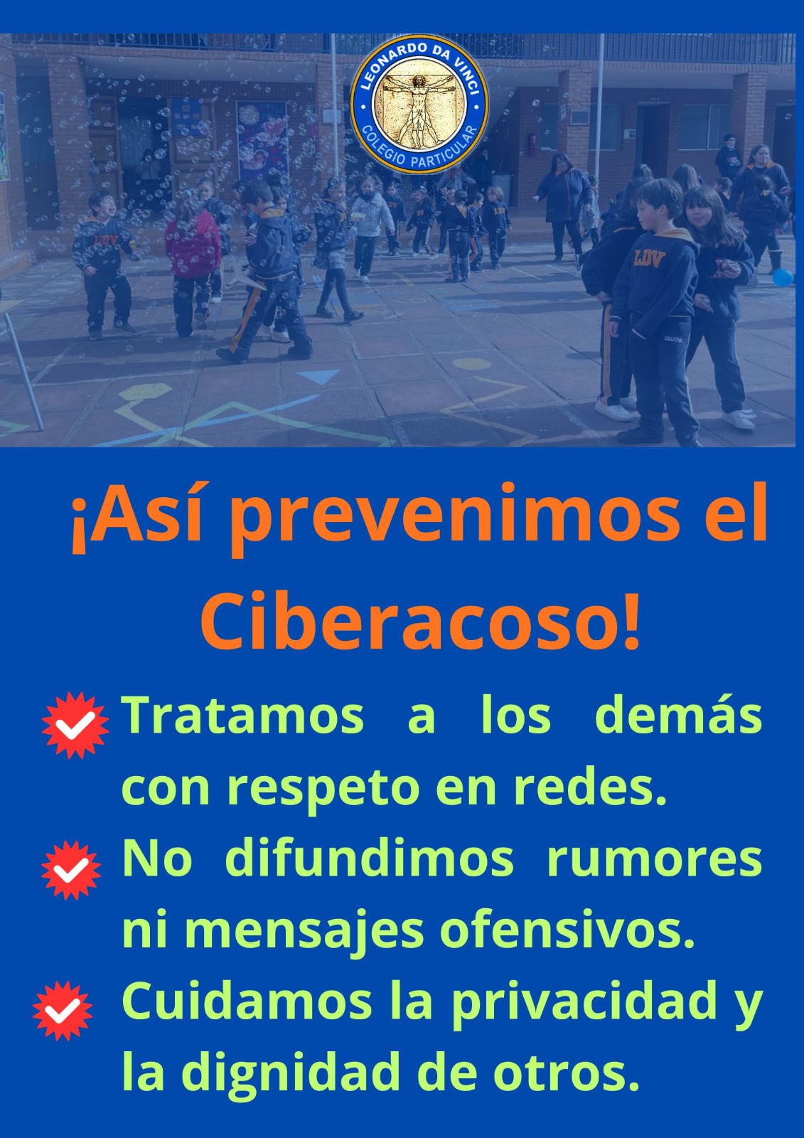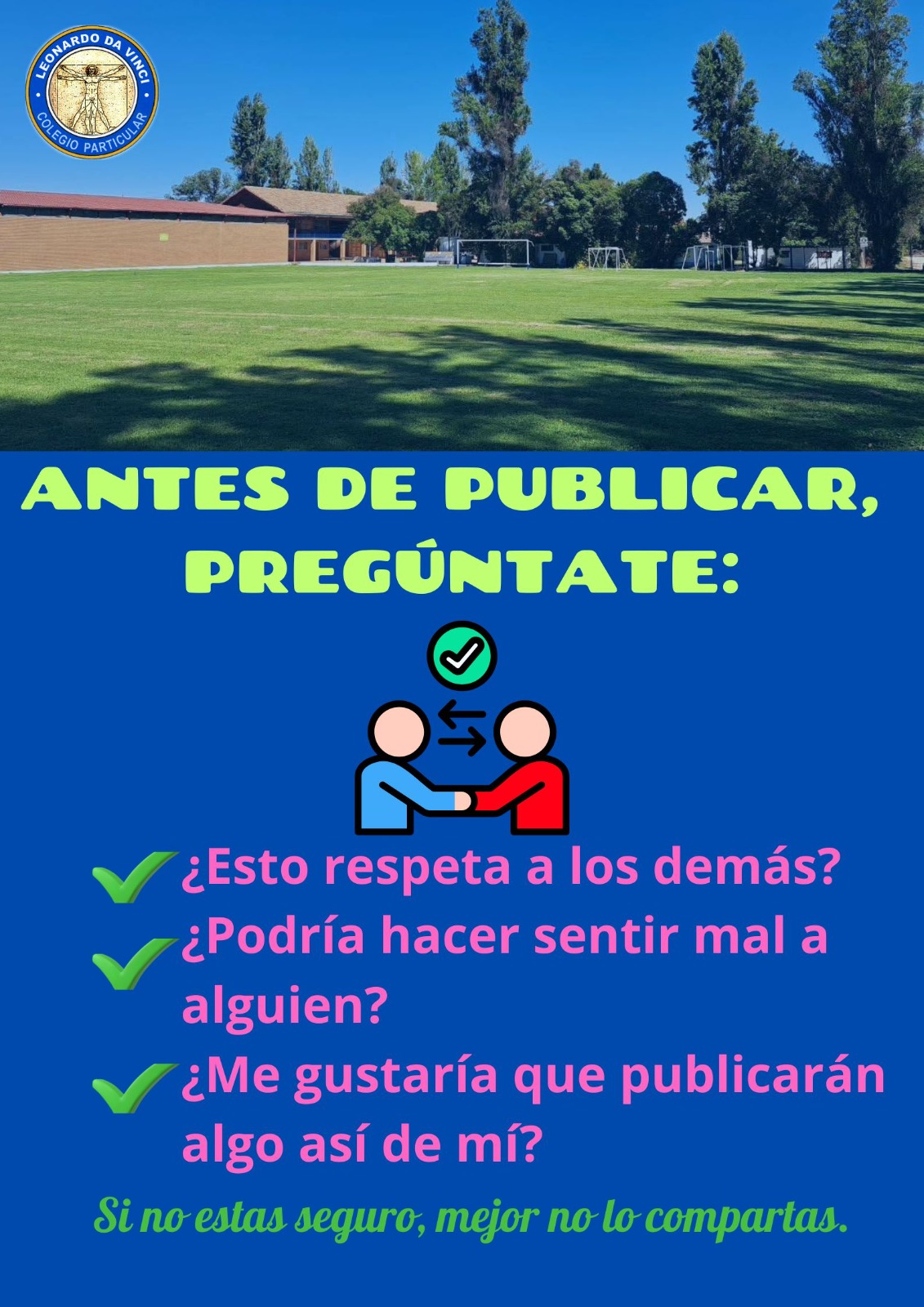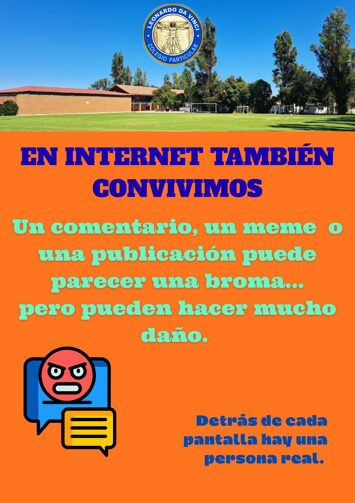 📱 Hoy en día, el uso del celular y de las plataformas digitales forma parte de la vida cotidiana. Sin embargo, es fundamental recordar que lo que se dice, se comparte o se publica en internet también puede afectar a otras personas. 🤝 El respeto, la empatía y la responsabilidad deben estar presentes tanto en los espacios presenciales como en los espacios digitales.