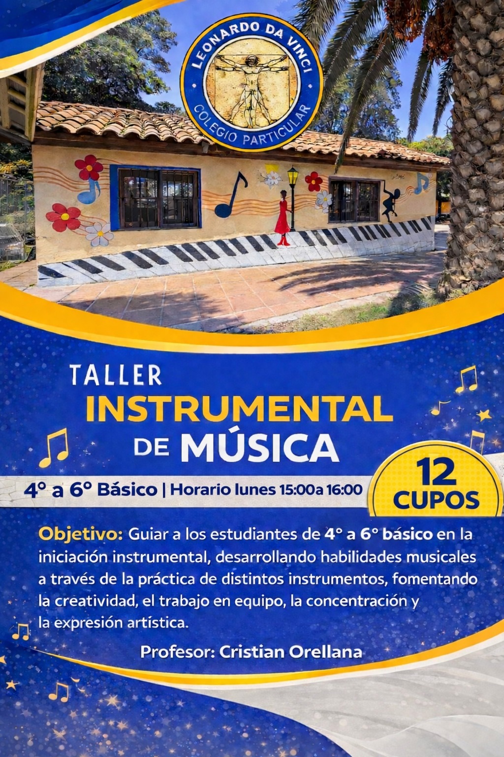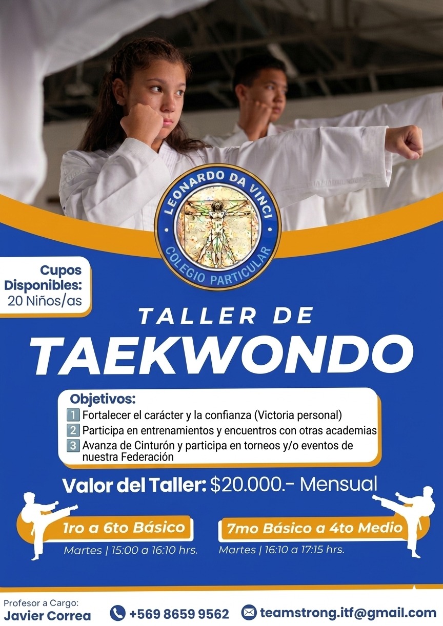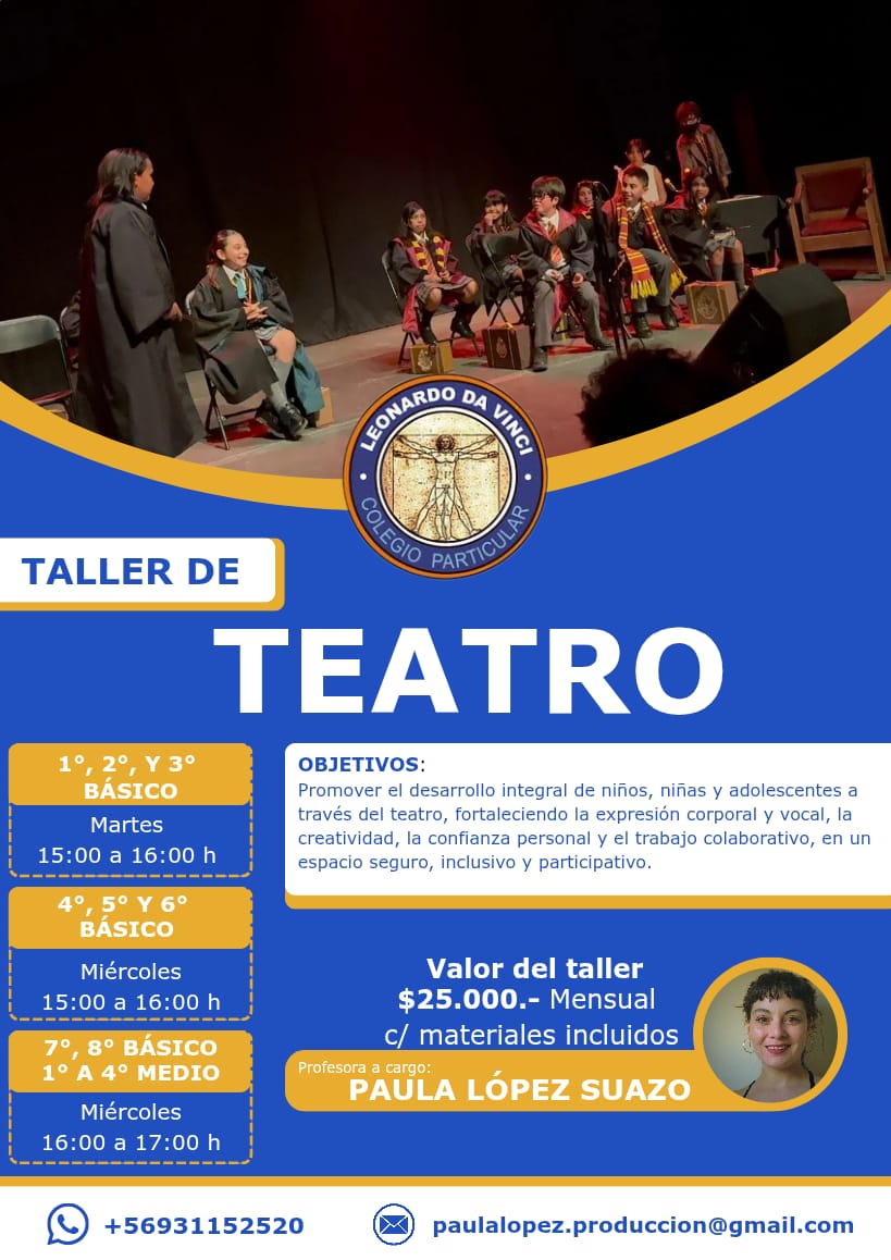 En nuestro colegio creemos que aprender también es explorar talentos, descubrir pasiones y disfrutar nuevas experiencias. Por eso, invitamos a toda nuestra comunidad a conocer y participar en nuestros talleres extraprogramáticos, espacios pensados para desarrollar habilidades, creatividad y trabajo en equipo.